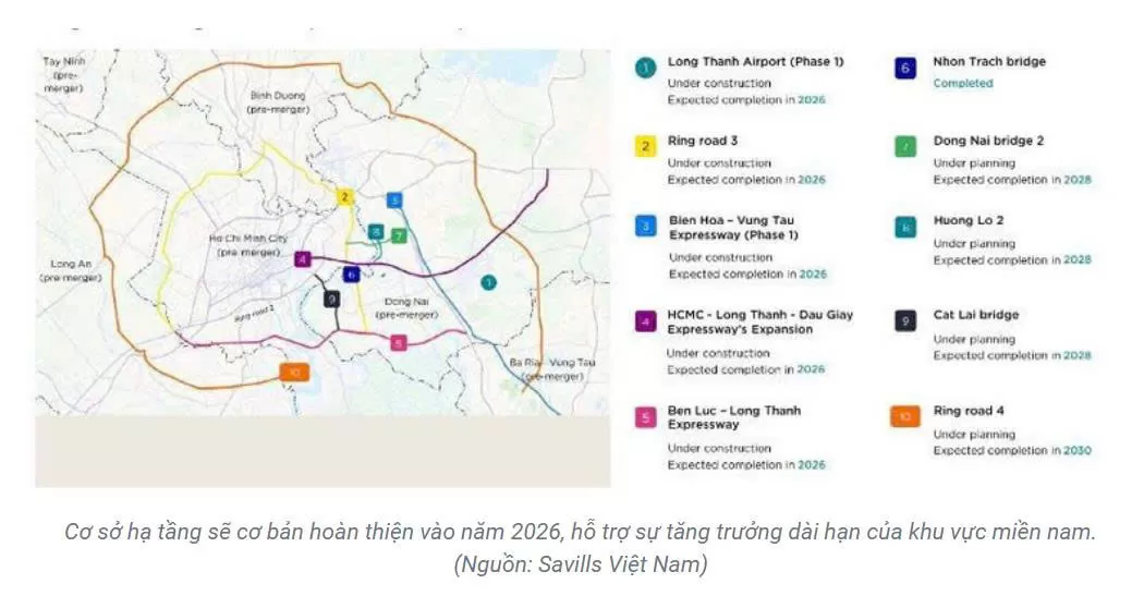 Trong giai đoạn trước, phát triển hạ tầng tại phía Nam được triển khai theo quy hoạch dài hạn. Tuy nhiên, giai đoạn 2025–2026 đánh dấu bước ngoặt quan trọng khi nhiều dự án trọng điểm đồng loạt tăng tốc, tạo nền tảng cho tăng trưởng dài hạn.